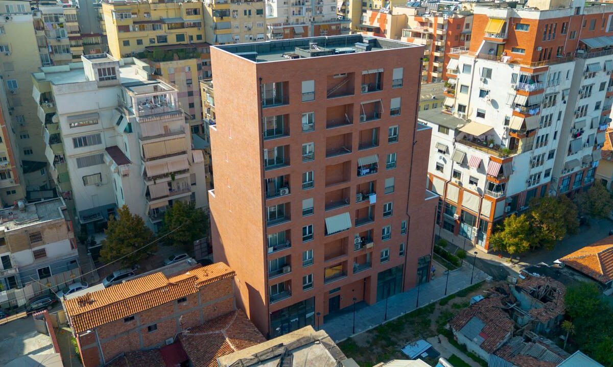 - Hapësirat e Brendshme: Ne kete ndertese gjejme apartamente te tipologjise 1+1 dhe 2+1, zyra të hapura dhe dyqane tregtare.